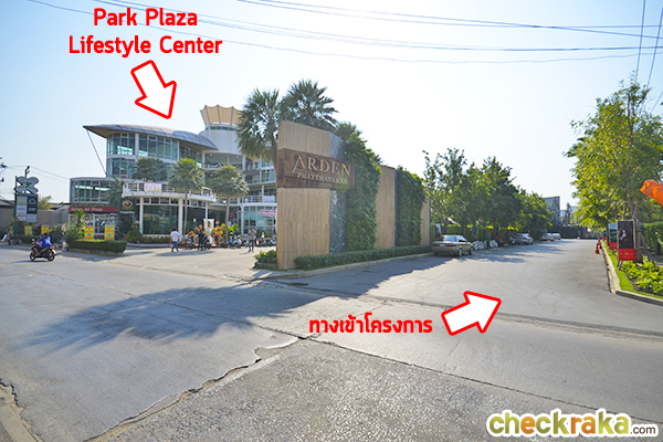 มาดูทางเข้าด้านหน้าถนนกันต่อ ตรงเข้ามาจากหน้าปากซอยประมาณ 750 ม. จะเห็นป้ายชื่อ "อาร์เด้น พัฒนาการ"
