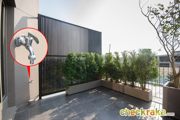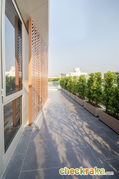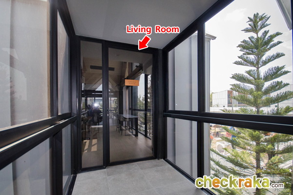 ด้านนอกเป็นพื้นที่ระเบียงขนาดเล็กกว่าระเบียงเมื่อครู่ แต่ก็ยังมีพื้นที่เยอะพอสมควรนะคะ