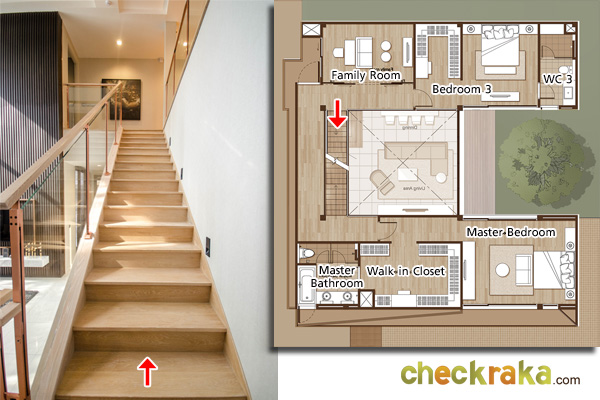 ขึ้นไปชั้นบนกันค่ะ จากแปลนบ้านจะเห็นว่า ชั้นสองประกอบไปด้วย Master Bedroom, ห้องนอน 3, และ Family Room