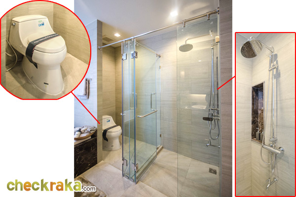 ภายในห้องน้ำ แยกส่วนแห้งส่วนเปียกด้วยประตูกระจกนิรภัย