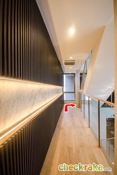 ขึ้นมาจะเจอกับโถงทางเดิน และประตูทางออกไปยังระเบียง