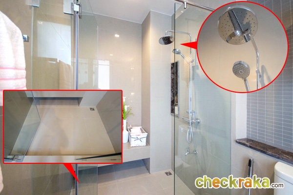 อีกด้านกั้นห้องกระจก แยกส่วนสุขภัณฑ์ กับฝักบัวอาบน้ำ