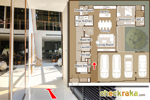 เทียบกับบ้านส่งมอบในลักษณะนี้ จะเห็นว่ามีหน้าต่างกระจกใสบานใหญ่สำหรับ Take View Courtyard