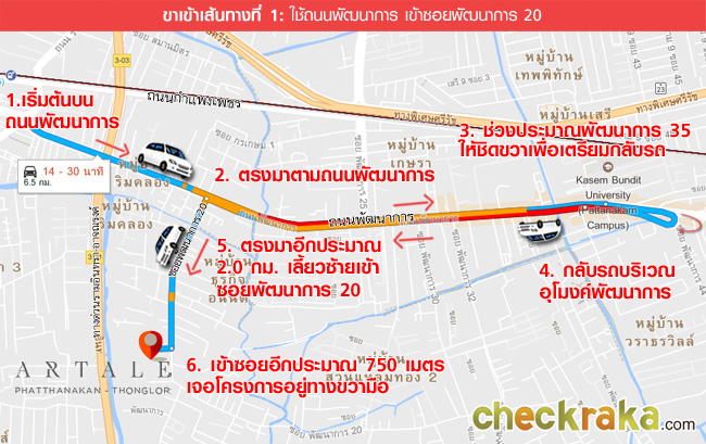 ขาเข้าโครงการ เส้นทางที่ 1 - ใช้ถนนพัฒนาการ เข้าซอยพัฒนาการ 20