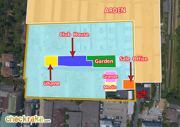 ที่ตั้งโครงการอยู่ที่เดียวกับอาร์เด้น พัฒนาการ ใช้ทางเข้าร่วมกัน เลี้ยวเข้าไปได้เลยค่ะ