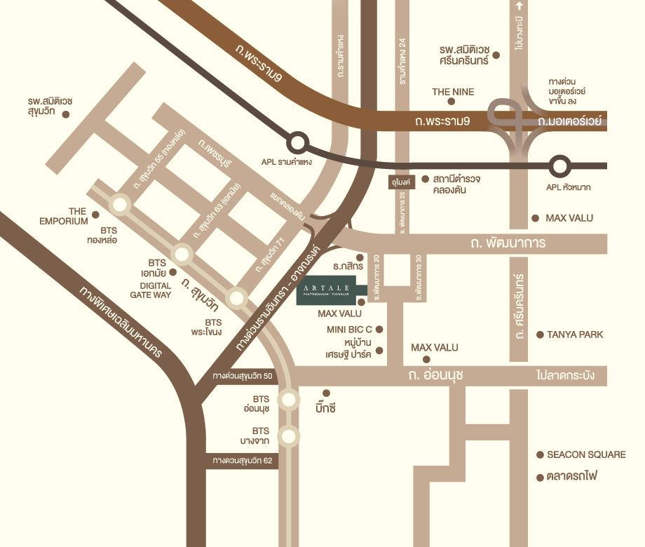 แผนที่โครงการ อาเทลล์ พัฒนาการ - ทองหล่อ (Artale Pattanakarn - Thonglor)