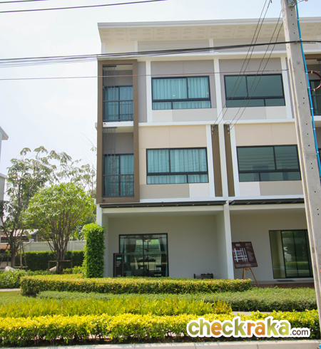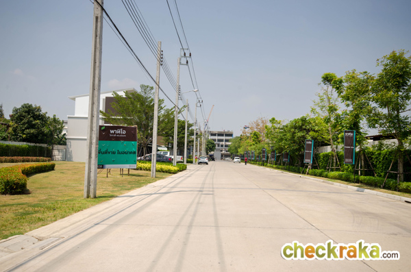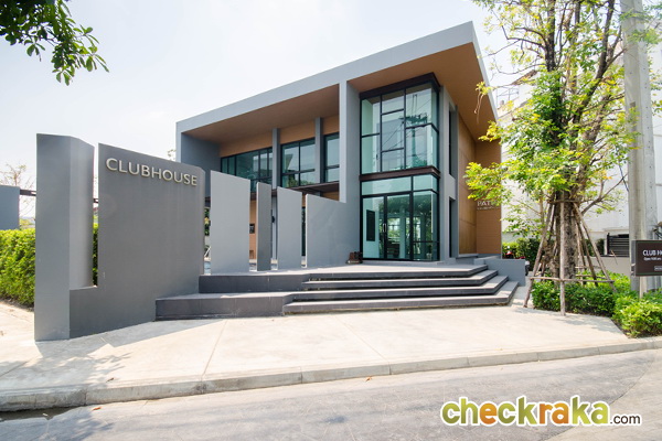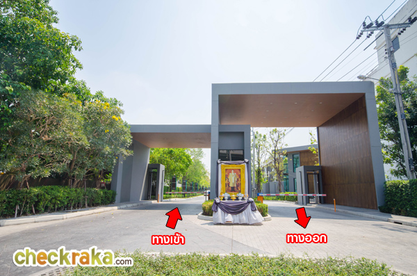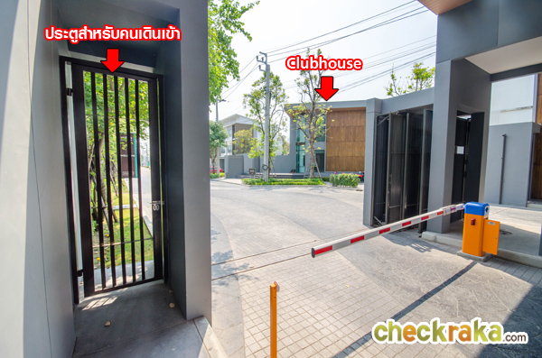 ผ่านซุ้มประตูเข้ามาจะเห็นคลับเฮ้าส์อยู่ฝั่งขวามือ และ Sale Office อยู่ถัดไป ส่วนบ้านตัวอย่างอยู่ถัดจาก