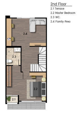ขึ้นมาที่ชั้น 2 จะพบ Family Area และ Master Bedroom พื้นชั้นนี้เป็นพื้นลามิเนตหนา 8 มม.