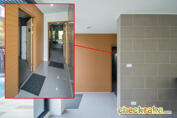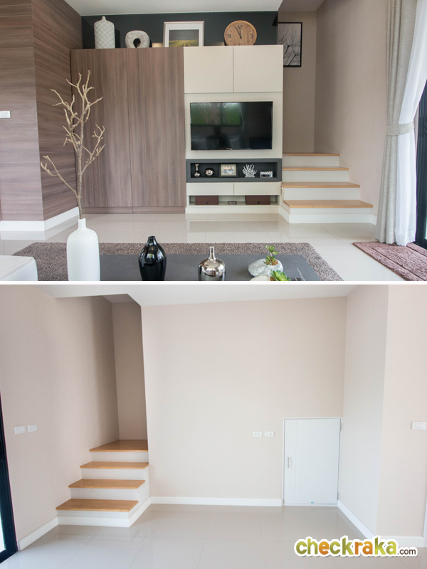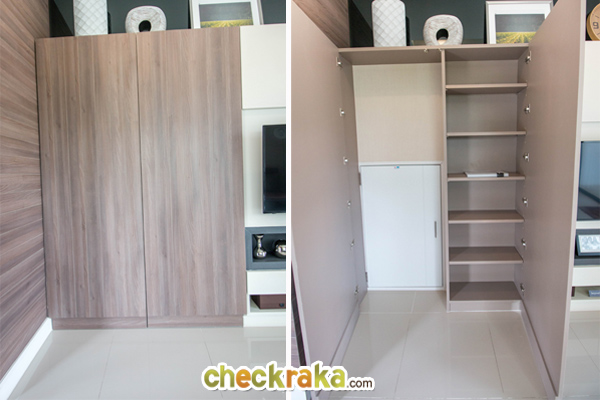 บ้านตัวอย่างทางโครงการตกแต่งเป็นตู้เพิ่มขึ้นมา เพื่อซ่อนทางเข้าห้องเก็บของไว้
