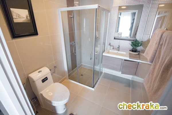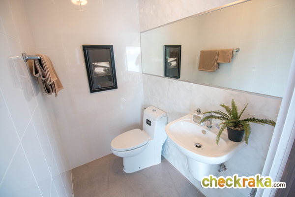 ห้องน้ำของที่นี่ให้สุขภัณฑ์มาครบทั้งโถสุขภัณฑ์ อ่างล้างมือพร้อมบานปิด และกระจก นอกจากนี้ยังแยกส่วนเปียก/แห้งให้