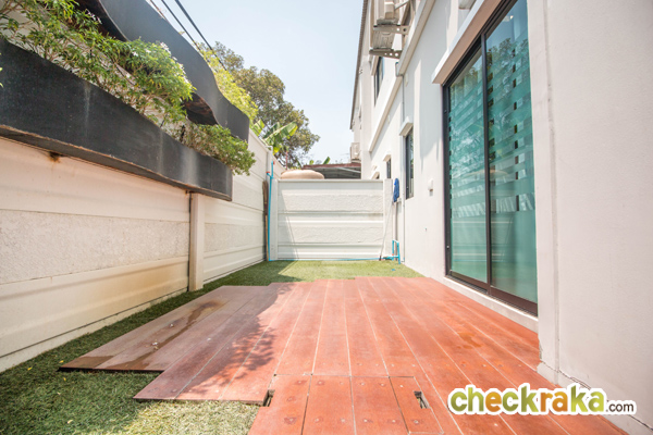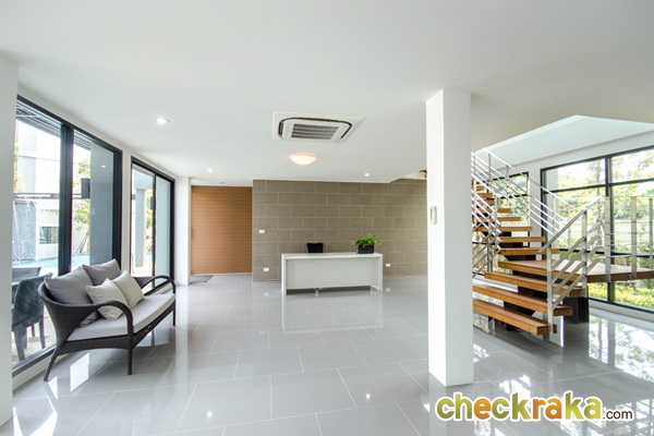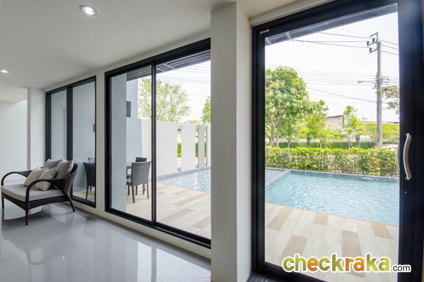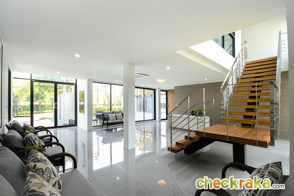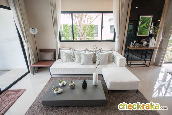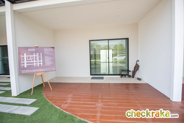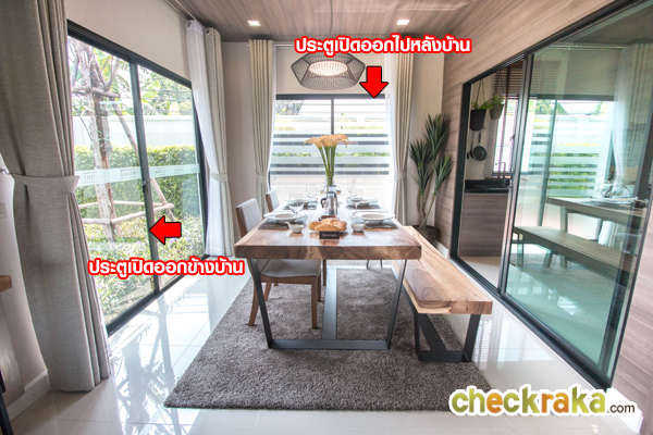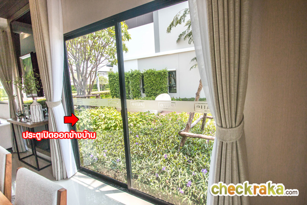 บ้านตัวอย่างเป็นหลังมุม จะมีประตูเปิดออกไปข้างบ้าน