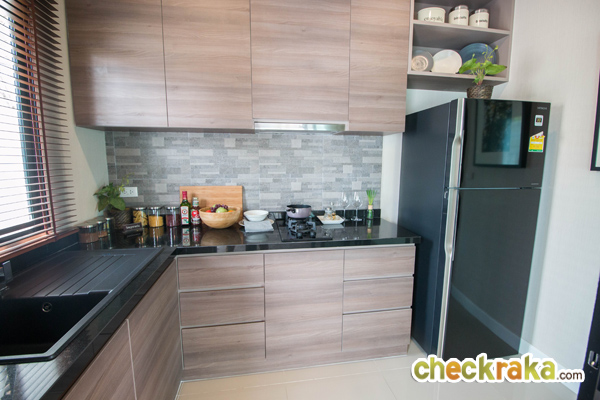 ครัวของที่นี่เป็นครัวแยก มีประตูปิดให้อย่างชัดเจน มีพื้นที่สำหรับวางตู้เย็น ภายในครัวสามารถตกแต่งเคาน์เตอร์ตัว L ได้