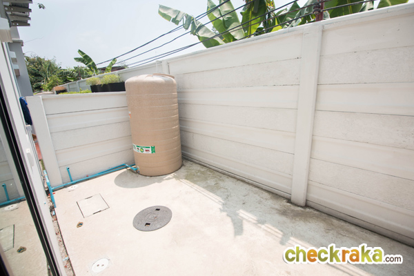 ลานซักล้างหลังบ้านเป็นพื้นซีเมนต์ฉาบเรียบมีความกว้างตามมาตรฐานประมาณ 2 เมตร