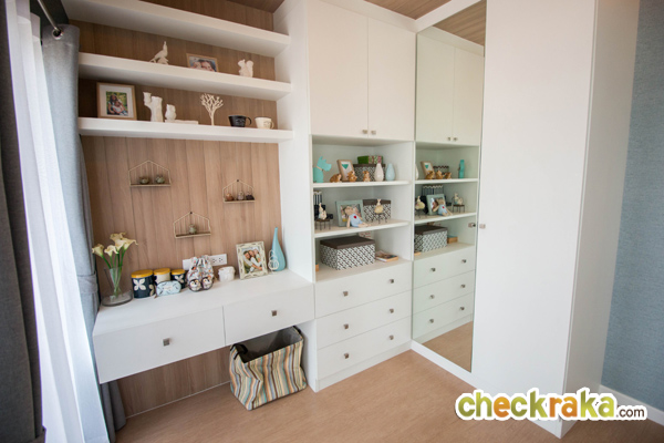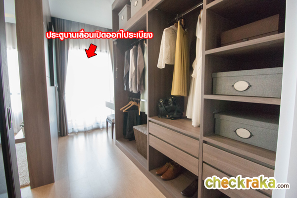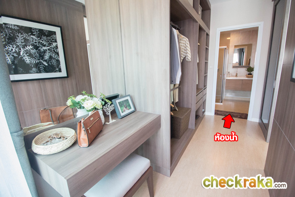 Mini Walk in Closet มีระยะเดินเข้า-ออกได้สะดวก จัดวางตู้เสื้อผ้าและโต๊ะเครื่องแป้งได้อย่างพอดี