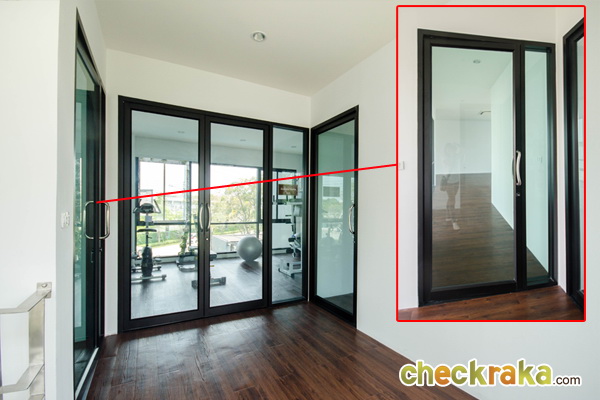 เปรียบเทียบกับบ้านเปล่า จะเห็นขนาดห้องและหน้าต่างได้ชัดเจนขึ้น ตัวหน้าต่างบานเลื่อนและบาน fix