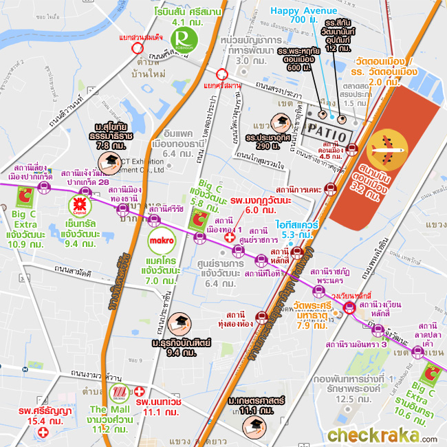 สนามบินดอนเมือง ห่างจากโครงการประมาณ 3.2 กม.