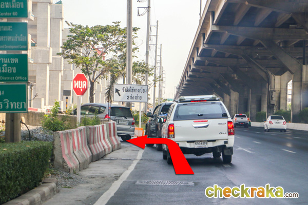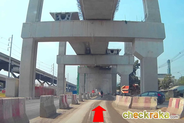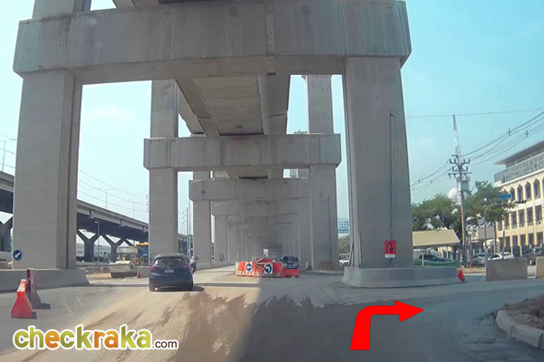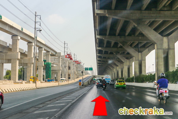 ขับตรงไปตามใต้รางรถไฟฟ้าสายสีแดง