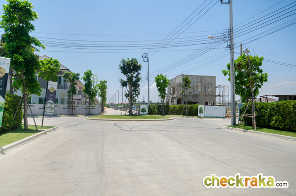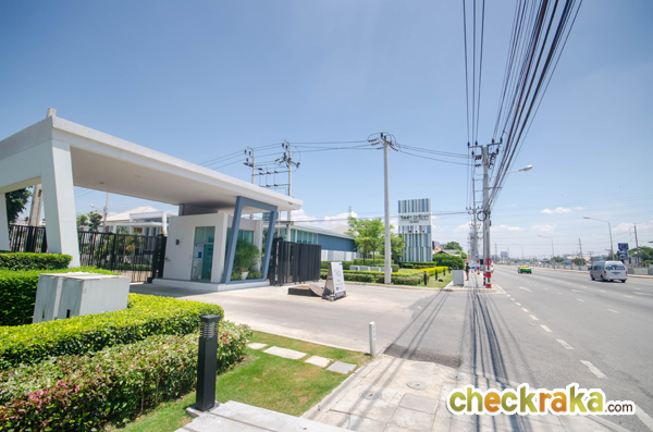 บริเวณด้านหน้าโครงการ เป็นถนนใหญ่ตำหรุ - บางพลี เกาะกลางถนนคั่นด้วยคลองตรง