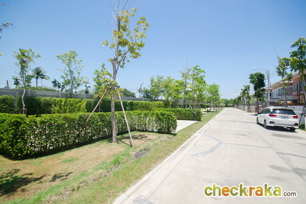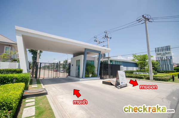 ทางเข้าด้านหน้าของโครงการ ติดถนนใหญ่ บางพลี - ตำหรุ จัดสวนให้ทั้งฝั่งซ้ายและขวา