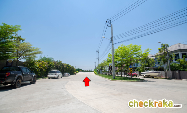 ข้ามสะพานมาแล้วจะเห็นวงเวียน พื้นที่หลังจากวงเวียนฝั่งซ้ายมือเป็นบ้านที่สร้างเสร็จพร้อมเข้าอยู่แล้ว