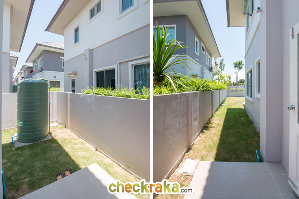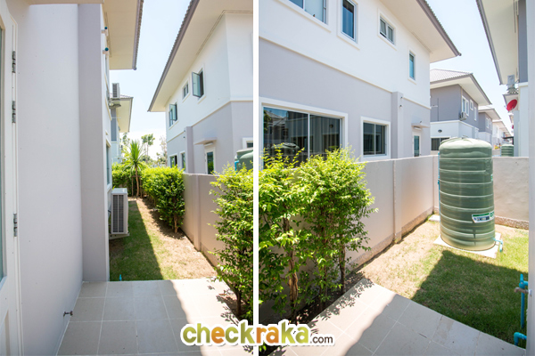 ข้างบ้านของแต่ละหลังมีขนาดไม่เท่ากันนะคะ แล้วแต่แปลงที่ดินแต่ละแปลงเลย