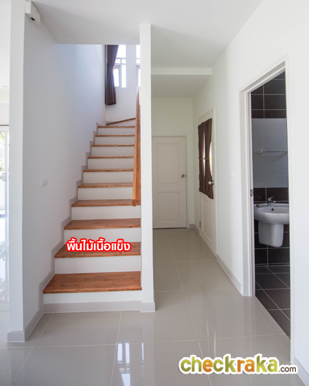 กลับเข้ามาดูห้องน้ำชั้นล่างที่อยู่ติดกับครัว ให้สุขภัณฑ์มาครบ หน้าตาเหมือนกับบ้านเปล่ามาตรฐานค่ะ