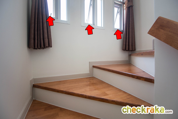 มีชานพักและช่องแสงขนาดใหญ่ตรงโถงบันได ช่วยให้แสงสว่างเข้ามาได้ดีทีเดียว