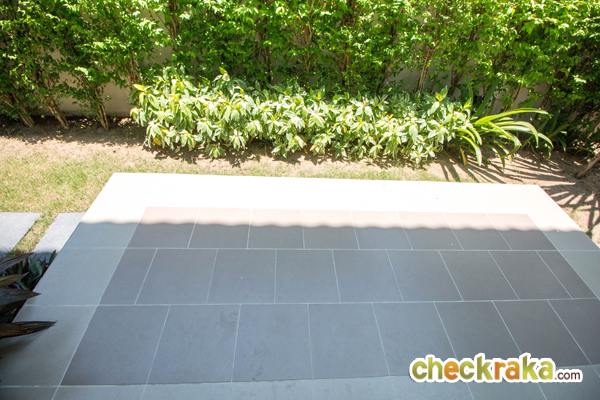 เปิดประตูจากครัวออกมาหลังบ้านจะมีลานซักล้างมาให้ พื้นเป็นซีเมนต์ปูกระเบื้อง