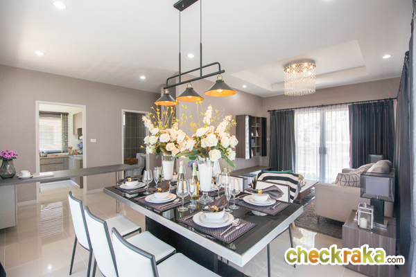 ถัดจากส่วนรับแขกเป็นส่วนรับประทานอาหาร พื้นที่ส่วนนี้สามารถวางโต๊ะอาหารขนาด 4-6 ที่ได้ค่ะ