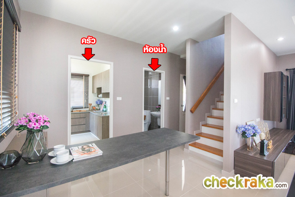 ด้านหน้าห้องครัว มีโต๊ะยาวๆ เปรียบเสมือน Pantry ไว้สำหรับเตรียมอาหาร สำหรับบ้านเปล่าจริงๆ ไม่มี Pantry มาให้