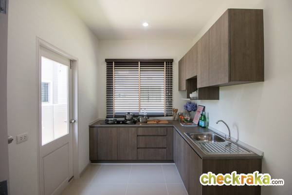 ครัวที่นี่เป็นครัวแยก ภายในห้องมีหน้าต่างบานเลื่อนให้ 1 บาน และมีประตูเปิดออกไปลานซักล้างหลังบ้าน