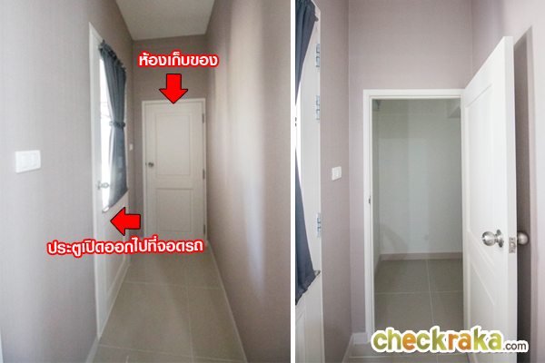 ถัดจากห้องน้ำ จะเห็นประตูที่เปิดออกไปส่วนที่จอดรถ และลึกเข้าไปข้างใน คือห้องเก็บของใต้บันไดค่ะ