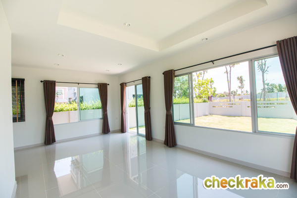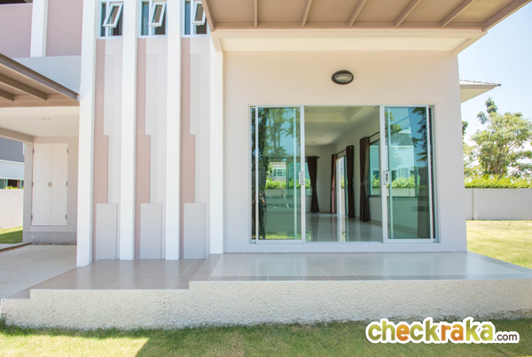 ส่วนบ้านเปล่ามาตรฐานจะปูหญ้าให้เต็มพื้นที่ว่างเท่านั้นค่ะ