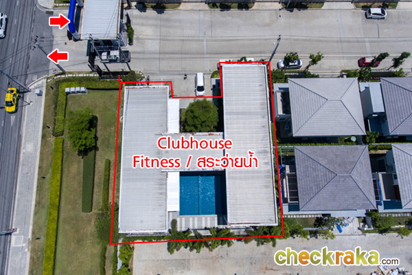 ผ่านซุ้มประตูเข้ามาในโครงการฝั่งขวามือ จะเห็นคลับเฮ้าส์ ซึ่งปัจจุบันใช้พื้นที่ด้านหน้าของคลับเฮ้าส์