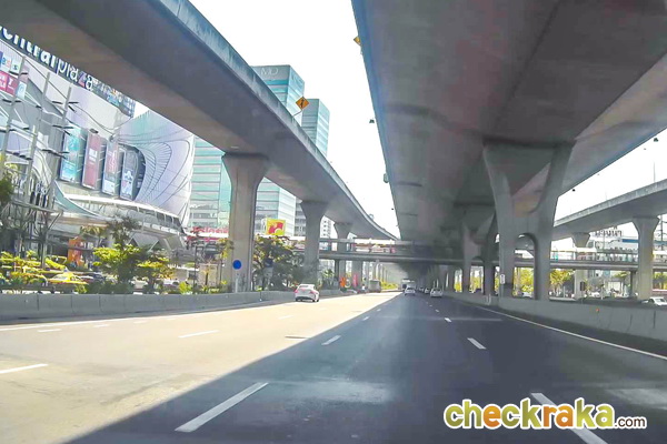 จากนั้นเบี่ยงกลับเข้าเลนขวา เข้าสู่ทางยกระดับ