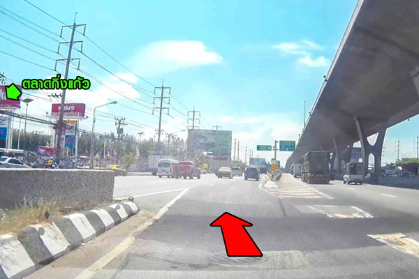 พอออกมาเลนด้านนอกแล้ว ให้เตรียมชิดขวาเพื่อขึ้นสะพานกลับรถ
