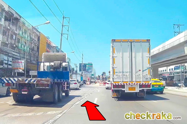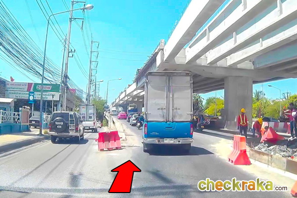 บริเวณใกล้ๆ กับแยกเทพารักษ์มีการก่อสร้างอยู่ ให้เบี่ยงไปทางซ้าย
