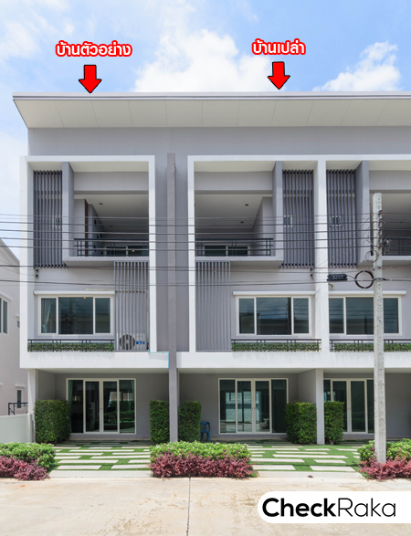 บ้านตัวอย่างของที่นี่เป็นทาวน์โฮมหลังติดกัน อยู่ในบล็อคเดียวกัน ฝั่งซ้ายเป็นบ้านที่ตกแต่งเฟอร์นิเจอร์ทั้งหลัง