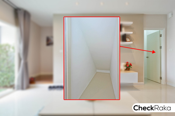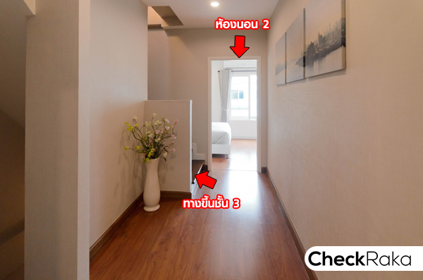 ตรงข้ามกับห้องนอน 3 คือห้องนอน 2 และมีทางขึ้นชั้น 3 อยู่ข้างประตูทางเข้า