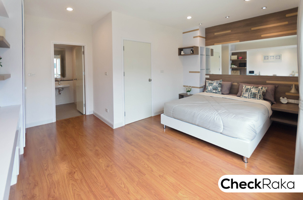 สำหรับบ้านเปล่ามาตรฐานจะเป็นห้องโล่งๆ เลย แต่บ้านตัวอย่าง ได้ Built in Walk-in Closet ขนาดย่อมมาให้