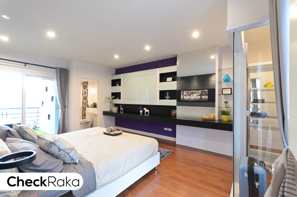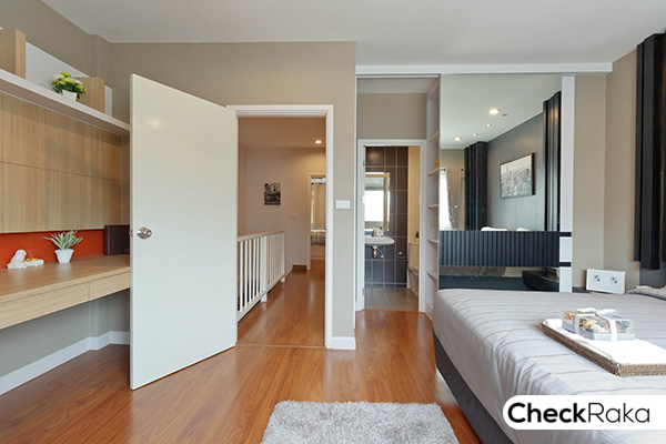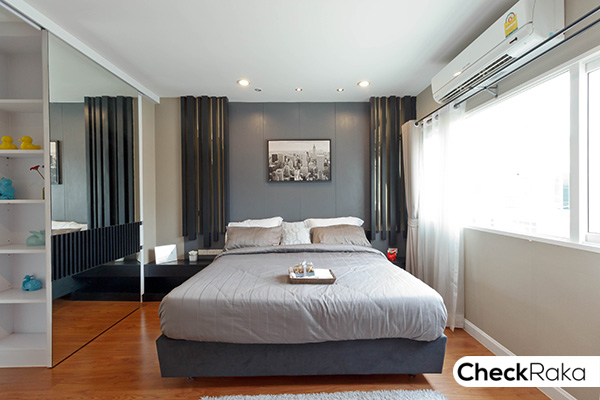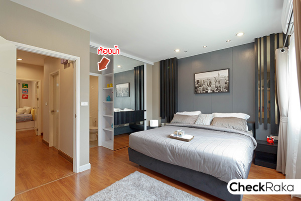 ภายในห้องสามารถจัดวาง Walk-in Closet เตียงนอนขนาดใหญ่ ชั้นวางของ และโต๊ะทำงานได้สบาย
