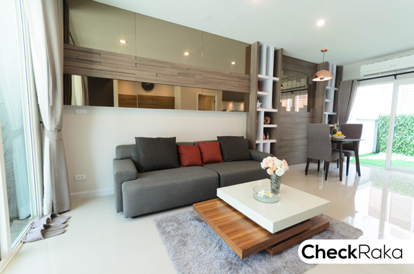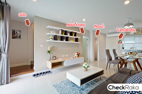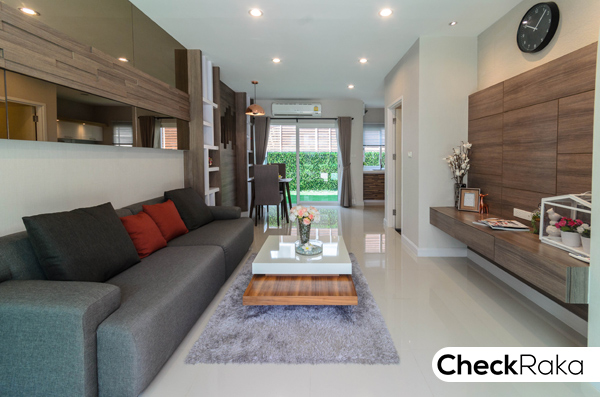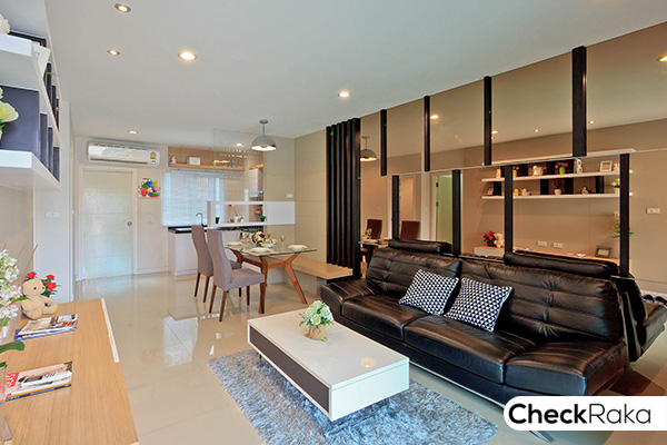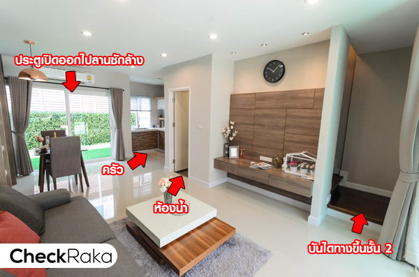 เป็นบ้านตัวอย่างที่ตกแต่งเฟอร์นิเจอร์ให้ทั้งหลัง สำหรับบ้านที่ส่งมอบให้กับลูกค้าของที่นี่ จะเป็นบ้านเปล่า