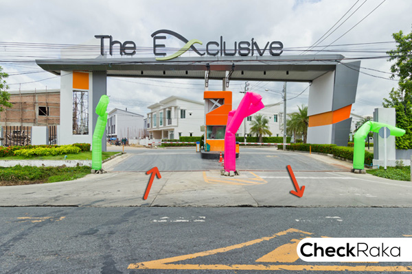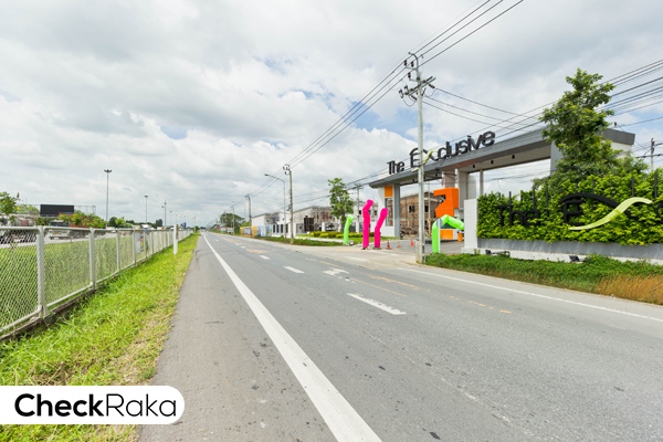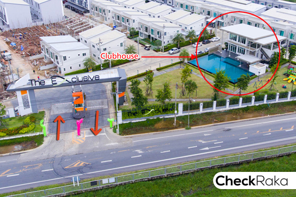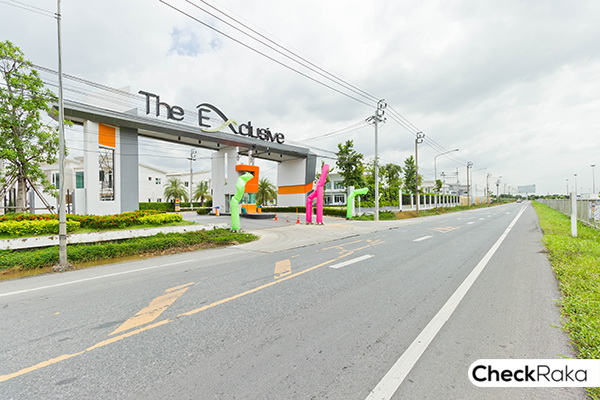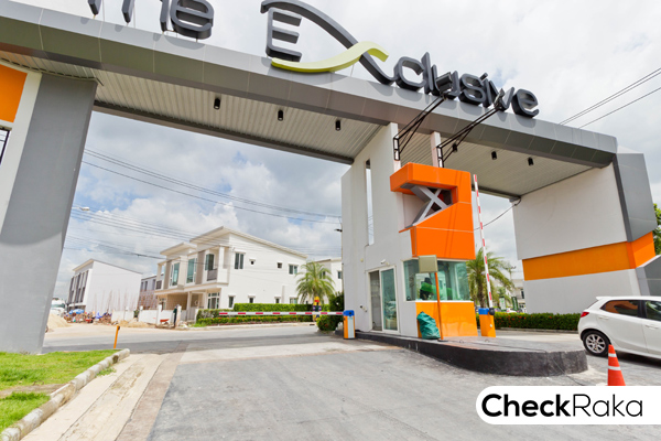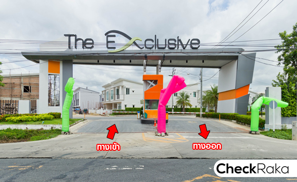 ซุ้มประตูโครงการมีขนาดใหญ่ พร้อมชื่อโครงการ The Exclusive