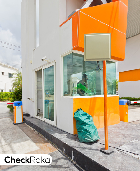มีห้องสำหรับรปภ. กั้นตรงกลางระหว่างทางเข้าและทางออก