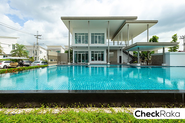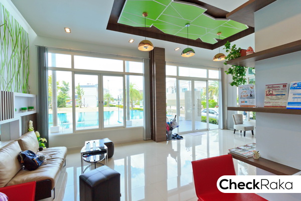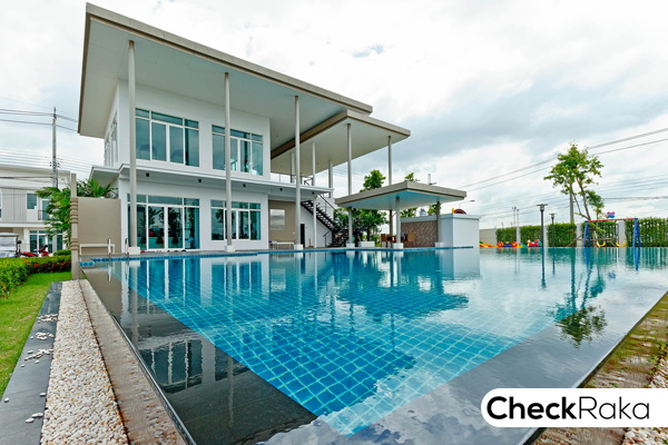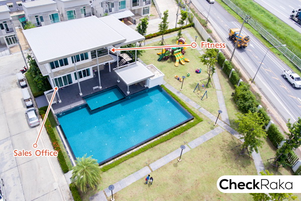 - คลับเฮ้าส์ 2 ชั้น สไตล์โมเดิร์นด้านหน้าโครงการ