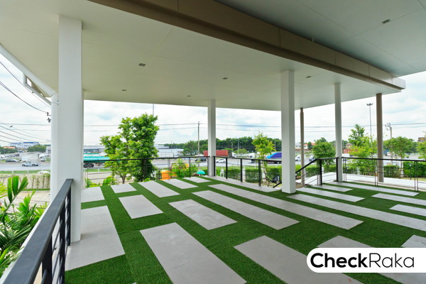 ระเบียงด้านนอกมีขนาดใหญ่มาก สามารถจัดเป็นสวนเล็กๆ หรือตกแต่งเป็นที่นั่งเล่นพักผ่อนแบบบ้านตัวอย่างก็ได้นะคะ