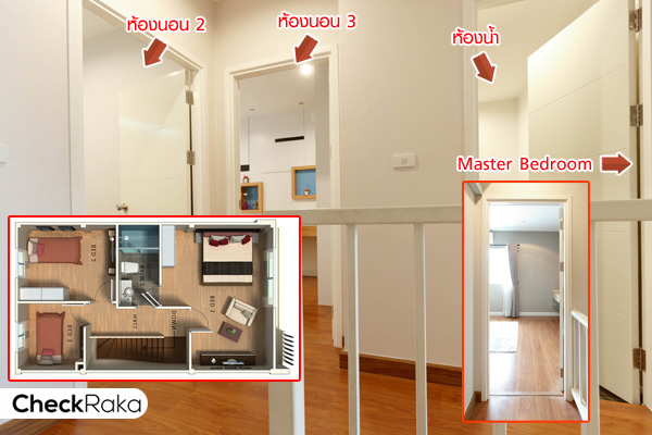 ก่อนจะถึงทางเข้าห้อง Master Bedroom จะมีชานพักหน้าห้อง และหน้าต่างให้ 1 บาน