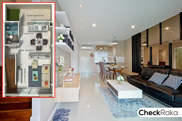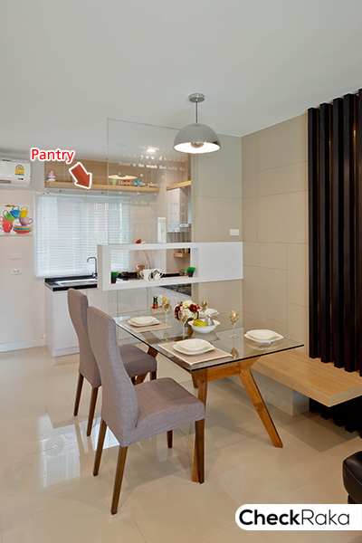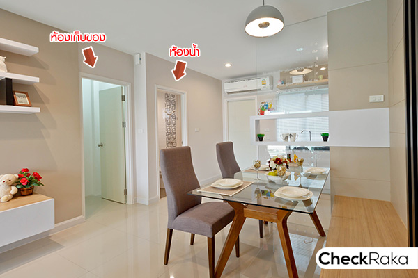 แบบบ้านตัวอย่างได้ และมีพื้นที่เหลือพอให้วางตู้เย็นได้พอดี