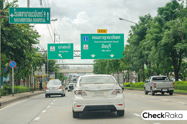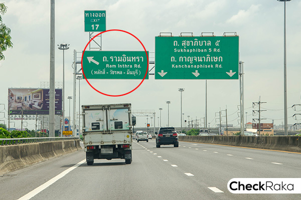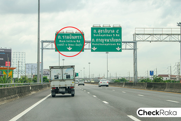 เข้าสู่ถนนรามอินทรา ขับตรงบนถนนรามอินทรามาเรื่อยๆ ไปตามป้ายถนนกาญจนาภิเษก