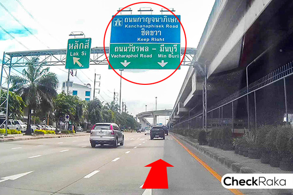 แล้วไปตามป้าย ถนนกาญจนาภิเษก ให้ชิดขวา